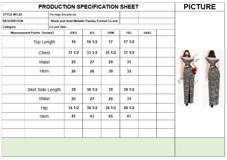 Experience true opulence in The Regal Brocade Set, a striking two-piece ensemble designed for grand formal occasions. The set is crafted from luxurious Metallic Brocade in a structured fabric , featuring a rich Black and Gold Metallic Paisley Print. The top is a chic, cropped piece with refined Cap Sleeves and a sophisticated Ruffled Neckline / Keyhole detail. The matching Maxi / Floor-Length Pencil Skirt is high-waisted and expertly tailored. This coordinated set is a high-fashion alternative to a traditional gown, perfect for Formal Wear / Gala events